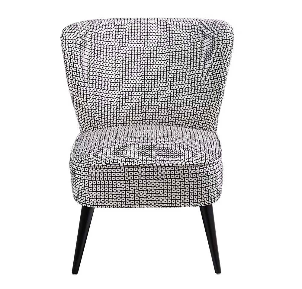 Le fauteuil Graphic à louer près de Paris dispose de légers motifs rappelant les années 1960 connues pour proposer du mobilier aux lignes épurées, aux formes rondes et géométriques.