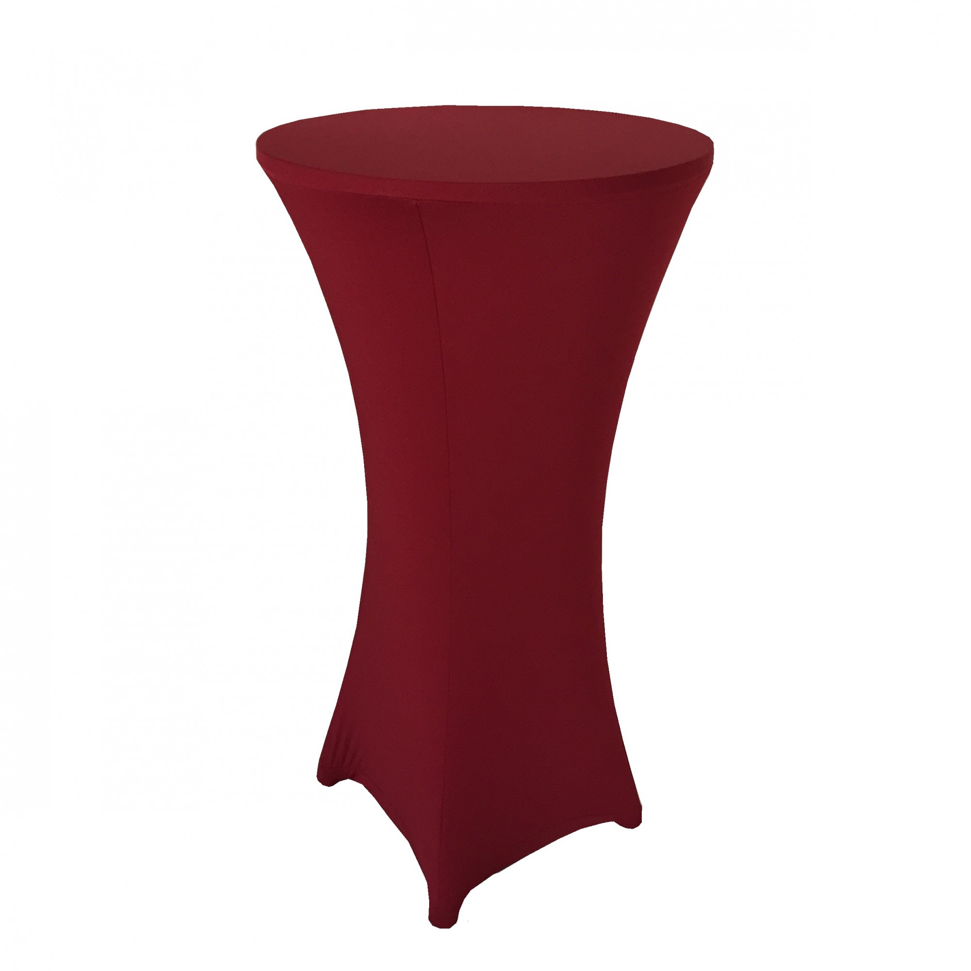 Ce mange debout avec sa housse en lycra bordeaux donnera un coté chic à votre événement. A assoicer avec nos tabourets et manges debout lycra aux couleurs acidulées.